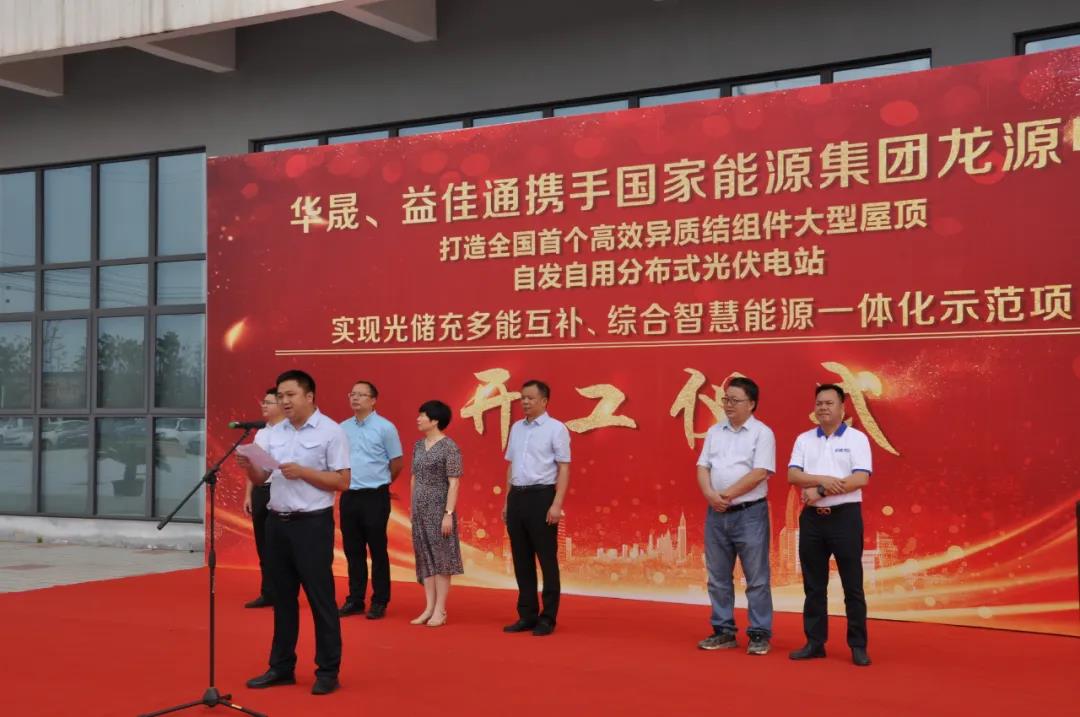9月27日上午,由益佳通、華晟新能源攜手國家能源集團龍源電力打造的全國首個高效異質結組件大型屋頂自發自用分布式光伏電站項目在益佳通廠內隆重舉行開工儀式典禮。現場參加開工儀式的領導有:宣城經開區黨工委委員,管委會副主任羅正軍、經開區黨工委委員,系統工會主席余紅、投資服務中心主任丁光華、開盛建設投資集團董事長張增華、國家能源集團龍源電力安徽公司副總經理孫明、安徽益佳通電池有限公司副總經理楊云求、華晟新能源科技有限公司總經理徐曉華和各位來賓;開工儀式由華晟新能源總經理徐曉華主持。
