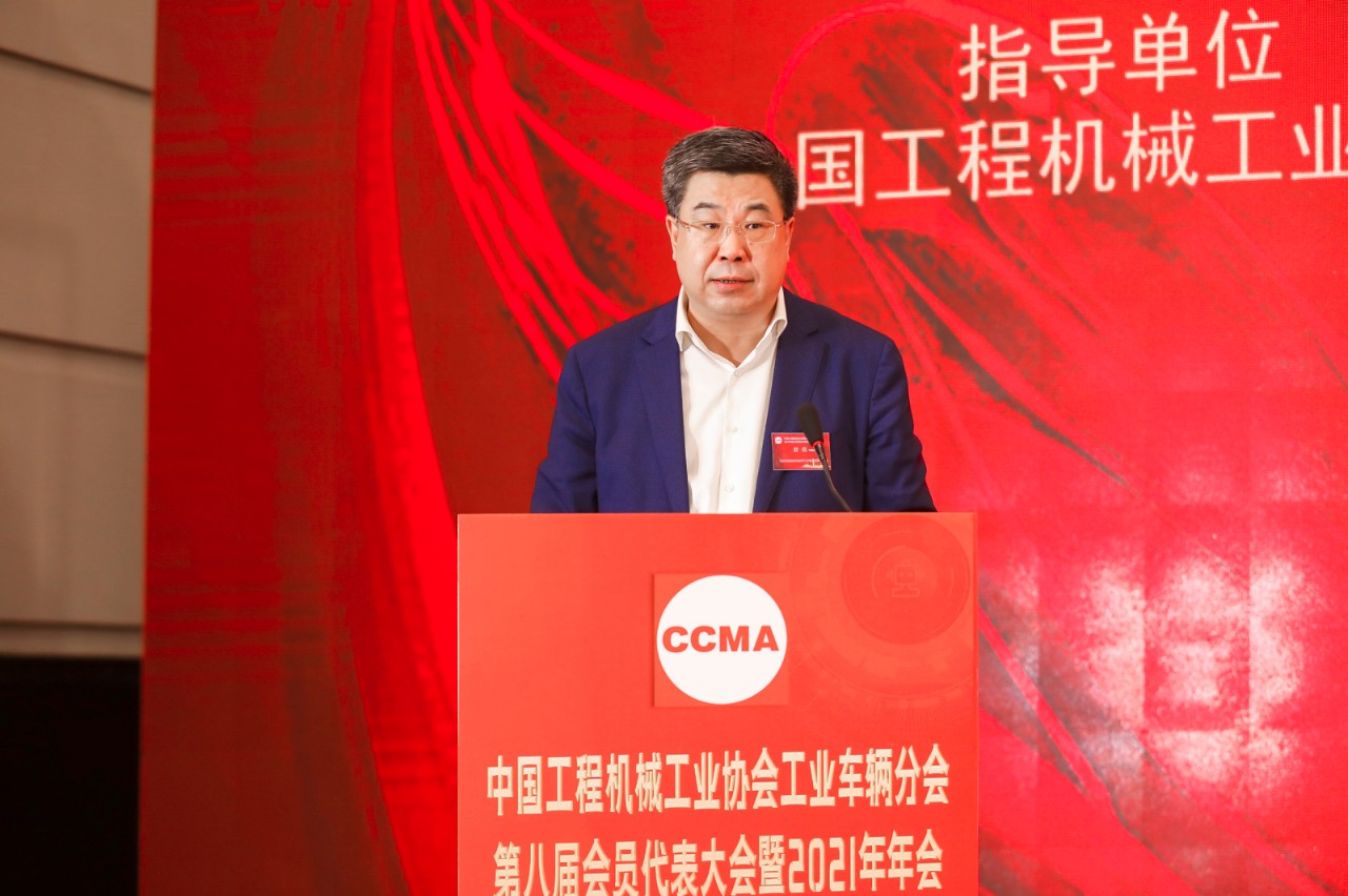 中國工程機械工業協會工業車輛分會會長唐超首先做大會開幕致辭,他表示企業是自主創新的主體,創新是推動行業可持續發展的關鍵。他呼吁要堅持創新驅動,效率驅動,加快推進基礎技術研究,關鍵零部件研發。在工業車輛領域,加大人工智能等研發的投入,發揮工業互聯網、大數據等對制造業的促進作用,推動企業向數字化、智能化、綠色化升級。靈活運用自主研發、合作研發引進吸收等方式,推進前瞻性原創性、顛覆性關鍵技術的研究。打造行業發展高速路,在攻堅克難中拓展發展新空間。整個行業同心同德,共創未來。行業大型骨干企業要發揮領頭雁、主力軍作用。守護市場健康環境,開放共享,合作共贏,帶動上下游產業鏈和中小企業同舟共濟,為行業高質量發展提供更為堅強的產業支撐。2021年是“十四五”的開局之年,對于工業車輛行業發展意義重大。面對復雜環境,面對逆境,我們要腳踏實地,不畏難,不畏輸,化危為機,把企業的發展融入到國家戰略和行業步伐中,去爭取更大的勝利。堅信中國的工業車輛行業明天會更美好,企業明天會更壯大。